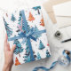 Blue and Orange Watercolor Christmas Trees Wrapping Paper
