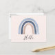 A postcard with a cute and whimsical rainbow. Blue and peach watercolors.