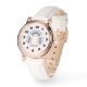 A watch with a cute and whimsical rainbow. Blue and peach watercolors.