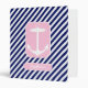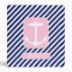 This cute and preppy design has a white anchor silhouette is in a light pink frame on a background of diagonal, nautical navy blue stripes. Customize it with your name or text.