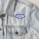 Simple custom name patches on color editable pink background with blue border stitching, no minimum order quantity and no setup fee.