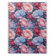 This spiral notebook features roses and peonies in soft sky blue, delicate shell pink, and dark wine red, with teal and purple foliage in the background. Beautiful and luxurious with a vintage country look that’s still very modern.