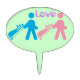A male and female golfer who love to golf, and this topper can be for their golf themed wedding, it has the word love in colorful letters.Everything can be changed to your favorite reason to use a cake topper.