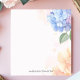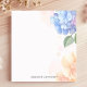 Add a touch of classic beauty to your notes with this elegant, personalized notepad. The design features a stunning cluster of blue and pink hydrangea blooms, creating a sophisticated sidebar along the right. The soft, muted background complements the floral motif. Customize this notepad with your own text. Perfect for everyday notes, thank-you notes, or special occasions.