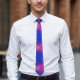 I bought this tie for a cosplay of Haruhi Fujioka for Halloween and anime conventions. It feels very nice and silky. It's my first tie ever, and I'm a pretty big fan since I always wanted a tie. It was longer than I expected it to be (quite a plus), but the purple stripe was also thinner than I expected it to be (a slight bit of a downer, but I don't mind too much). I had never used Zazzle before, but I am very impressed with the shipping time. I was looking for places to get a tie like this so last minute since the ties like this on Amazon were incompatible with Prime. Thus, I ended up here. I paid for express shipping, expected delivery October 30-31, and it arrived in the morning on the 30th. Very impressed. I might just use Zazzle again. The print job was okay. The colors were perfect, but as you can see in the pictures, the stripe was a little off-center, and there was a kink in the stripe around where it transitions from the wide end to the thin end. It should work perfectly for my cosplay, but it was a little too carelessly print to be a very professional tie.