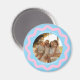 Blue and Pink Wavy Circle Photo Frame with Text Magnet