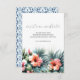 Let everyone know your wedding website with these blue, orange and pink floral enclosure cards. They feature a calligraphy typeface with your details in a classic sans typeface framed by a bottom boarder of watercolor hibiscus flowers and palm leaves. The card reverses to a complimentary blue pattern. To see the entire wedding stationery suite by Victoria Grigaliunas visit Do Tell A Belle on Zazzle. Unique art and design exclusive to Do Tell A Belle.