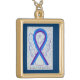 The guardian angel jewelry art necklace features the painting of a blue and purple awareness ribbon angel. The pendant has gold or silver options. Blue and purple awareness ribbon means support for pediatric stroke and rheumatoid arthritis awareness. The necklace message has "AWARENESS" but can be personalized. This blue and purple awareness angel ribbon art charm jewelry can be customized with personal messages to make great cause magnets for fundraisers, awareness gifts, or other special events or occasions.