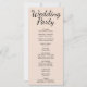 The text within the program is elegantly presented in a classic combination of black and gray, primarily using a simple block font for clarity and readability. To infuse an element of grace and charm, key phrases such as "Welcome," "Ceremony," and "Wedding Party" are delicately rendered in a pretty decorative script font. These scripted elements add a touch of sophistication and romance to the design, creating a harmonious balance between modernity and timeless charm.