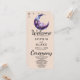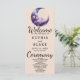 Introducing our Celestial Charm Wedding Program, a captivating and enchanting addition to your celestial-themed wedding celebration. This program boasts a sophisticated pink champagne background, setting the stage for a modern and ethereal design. Against this soft and elegant backdrop, a striking crescent moon in shades of blue and purple takes center stage, surrounded by wispy clouds that seamlessly blend into the celestial expanse. Accentuating the moon and clouds are an array of white, yellow, and gold stars, forming a celestial constellation that adds a touch of celestial magic to the overall design.