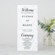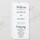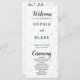 What adds a touch of enchantment to this wedding program are the ornate script fonts used for the words "Welcome," "Ceremony," and "Wedding Party." These decorative elements infuse the program with a sense of celebration and romance, perfectly contrasting with the simplicity of the block font. The interplay between the elegant script and the straightforward text creates a harmonious balance, capturing the essence of modernity and timeless allure.