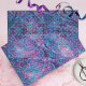 Introducing our new tissue paper design, featuring a stunning blue and purple pattern that is sure to catch your eye. The symmetrical pattern consists of a central diamond shape with a smaller diamond inside, surrounded by intricate lines and curves. The leaf-like motif on the outer edges adds a touch of elegance to the design. The colors are predominantly blue and purple, with some pink and white accents that add depth and dimension to the pattern. This tissue paper is perfect for adding a pop of color and style to any gift or project.