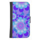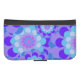 Pretty modern flowers in purple, pink, and blue cover the front of the wallet style Samsung Galaxy S4 case. Customize to add any text you want. Makes a great gift idea.