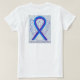 The painting of a blue and purple ribbon guardian angel is displayed on this custom cause awareness apparel shirts. The blue and purple awareness ribbon means support for pediatric stroke and rheumatoid arthritis awareness. Personalize the t-shirts on the front and back with your own awareness ribbon message or theme to make special angel ribbon clothing merchandise. The blue and purple awareness angel ribbon t-shirt art can be customized with personalized messages to make great cause shirts for fundraiser clothing, custom team walk shirts, personal awareness gifts, or other special cause awareness events or occasions.