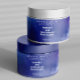A waterproof label for cosmetics and/or soap products with a watercolor blue and purple background and white text. Customize it with your business and product information.