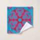 A bathroom towel set with a turquoise blue and red Persian-inspired pattern.