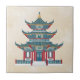 Blue and Red Chinese Pagoda Chinoiserie Temple Art Ceramic Tile