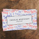 A modern design featuring beginner french phrases in red and blue on a white background. In the middle, there is a white box with a black outline for your name and profession, or a business name and tagline. This would be perfect for a french language teacher or a private tutor. On the back, the design is repeated with more space for your details.