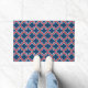 Blue and Red Moroccan Trellis, Lattice, Quatrefoil Doormat