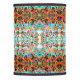 Geometric multi-colored lamp shade. Predominant colors are blue and red. Pair up with the matching throw pillow. Unique design that adds a pop of color to your decor.
