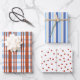 Blue and Red Collection of stripe, plaid and polka dot gift wrap.