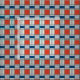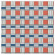 This colorful fabric features a retro geometric pattern in red, blue, light grey, and black.