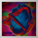 Illuminated deep blue and red rosebud abstract floral poster created from my original photo. Flower photography by Susan.
