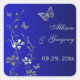 This square royal blue and silver gray floral wedding favor sticker or envelope seal has butterflies and flowers on it that matches the wedding invitation shown below. If you require any changes, or want any other matching items, please email niteowlstudio@gmail.com.