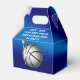 Super Cute Blue and Silver Girls Basketball Treat Bags Boxes with Your Text or Delete. For COLOR CHANGES, Call Designer Linda: 239-949-9090. I can design these blue, white and silver basketball favor boxes in ANY COLORS for Girls Basketball Party or Boys Basketball Party Ideas, Basketball Decorations and Supplies. Free custom design service by Little Linda Pinda Designs.