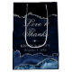 Blue and Silver Glitter Marble Agate Wedding Medium Gift Bag