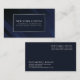 Professional business card featuring gradient blue background with silver frame on the front, and classic serif typography on both sides. This modern business card offers details for the company name, services, and address, along with your name, title, phone number and email address with classy little icons. To add more elements to the card such as logo, graphic, tagline, or more info, you can use the provided design tool to customize it further. This business card is ideal for any business or occupation. Several paper styles available, with optional rounded corners.