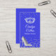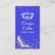 Glam pageant coach business card done in royal blue, with faux diamonds along the front's top and bottom and a silver and diamond crown and high heels. Personalize all the text for your pageant business.