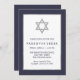 These elegant invitations to your Passover Seder have a dark blue border with a thin silver frame. The Star of David also appears in a silver color.