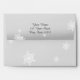 This beautiful design, called Blue and Silver Snowflake Wedding, has a pretty winter inspired design. The background is a beautiful blue. There is a silver border made from snowflakes scattered across the edges. At the top there are two linked hearts. This would be perfect for a winter wedding or if you are looking for a winter wonderland style. This set has invitations, save the date cards, response cards, thank you cards, table number tent cards, envelope seals, wine labels, binders, return address labels and many more day-of wedding stationery pieces, favors, and gifts available. Use the envelope seal stickers for any of your DIY gifts - these are available in both large and small sizes! All elements are printed on our high quality products, they do not include any real gold, jewels, embossing, or other textile elements. All designs are copyright Noteable Expressions, Inc. All rights reserved.