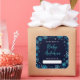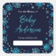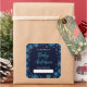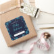 This elegant and glamorous bookplate sticker features watercolor blue and silver faux glitter snowflakes and sparkles on a navy blue background. It is perfect for a winter or Christmas themed baby shower.