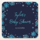 Blue and Silver Snowflakes Baby Shower Square Paper Coaster