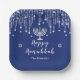 Blue and Silver String Lights Happy Hanukkah Paper Plates