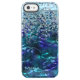 Glitzy clear iPhone 5S case done in a teal and blue crumpled foil look, with graphics of blue and silver tone glitter falling from the top. Personalize the blue text, at the bottom of the case, for yourself or as a epic gift idea for her.