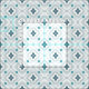 This fabric features a repeating pattern of various shapes in shades of blue and teal.