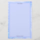 This stationery design features a border of swirls with blue and teal fine lines inside the border. Fill in the template field with your information, remove the text or click customize to select a typeface style, size, and color you prefer.