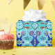 This decorative Wrapping paper has an intricate geometric design, in blue and turquoise on white. Use this to wrap gifts sewing or crafts. This original design is from Oregon tile maker Fay JonesDay.