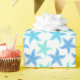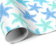 Blue and turquoise starfish on a white background, perfect summer pattern