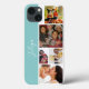 Personalize the phone cover with your favorite photos, easily can fit the photo to the area. photo collage iPhone Case in light blue and white background with 5 custom photos . you can change the background color from edit design tool.