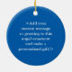 The guardian angel ornament features the painting of a blue and white awareness ribbon angel. Blue and white awareness ribbon means support for Amyotrophic Lateral Sclerosis (ALS). Blue and white awareness angel ribbon art can be customized with personalized messages to make great cause ornaments or pendants for fundraisers, awareness Christmas or holiday gifts, or other special events or occasions.