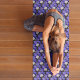 As a yoga mat, it is comfortable to use. I place a second mat under it for added comfort. But I mostly use this particular mat design for "Distance Reiki". (I am a graphic designer but I also do distance reiki work and needed something full size to work with my clients so I designed this for that purpose. The Chakras are highlighted and make it easy to place charkra stones over. I use a pendulum and tuning forks to balance the body's energy, and this helps me know, with greater detail, what part of the clients body I am connecting to when I feel fluctuations in the energy field. I am very pleased with how my design turned out. The background is very complex with color gradations and with text at the bottom. The text is readable and I am pleased with the detail in the graphics.