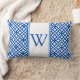 Blue and White Arabic Trellis Monogram Lumbar Pillow