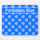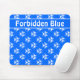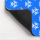 Bright blue mousepad with a repeating biohazard symbol pattern and editable text field for easy customization with your own name or message.