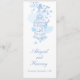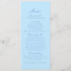 Double sided cute love bird couple line art graphic drawing of open bird cage hanging from a blossoming spring tree with hearts in pretty blue and white. Fashionable modern chic wedding design part of the blue bird cage romantic wedding set. Pretty pastel shades blue on a white background color. Edit this wedding reception dinner menu with your own menu text. Ideal for wedding guests to read and order on your special wedding day meal. Unique drawing and design by Sarah Trett.