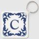 This elegant filigree pattern symmetrically frames your single monogram within a perfect diamond-shaped square, creating a harmonious blend of classic style and refined design. The intricate navy-blue flourishes in each corner add a touch of sophistication, inspired by a blue jade quilt pattern with subtle Moroccan influences.