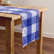 Blue and White Bold Checkered Plaid Design Short Table Runner